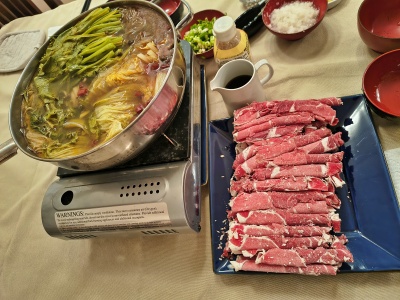 この日のランチは、自宅で火鍋にしました。最近広告をよく見かけるオンラインショップのWeeeを初めて利用してみたのです。アジアン食材に特化したサイトで、しゃぶしゃぶ用の薄切り肉なども充実しています。普段は地元の個人経営店を応援したいということであえて利用していませんでした。